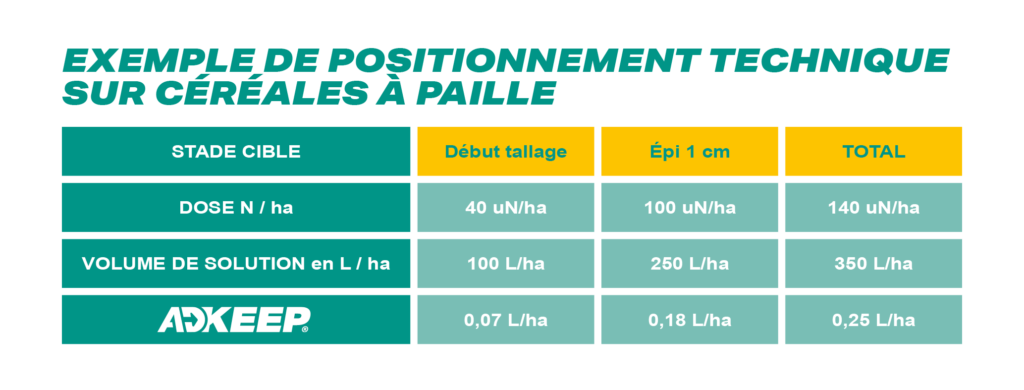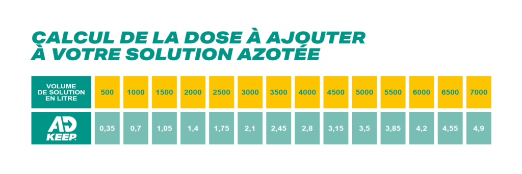 ADKEEP® est la solution la plus concentrée du marché avec 50% de matière active, permettant de réduire la dose à seulement 0,7 L pour 1000 L de solution azotée 30%.